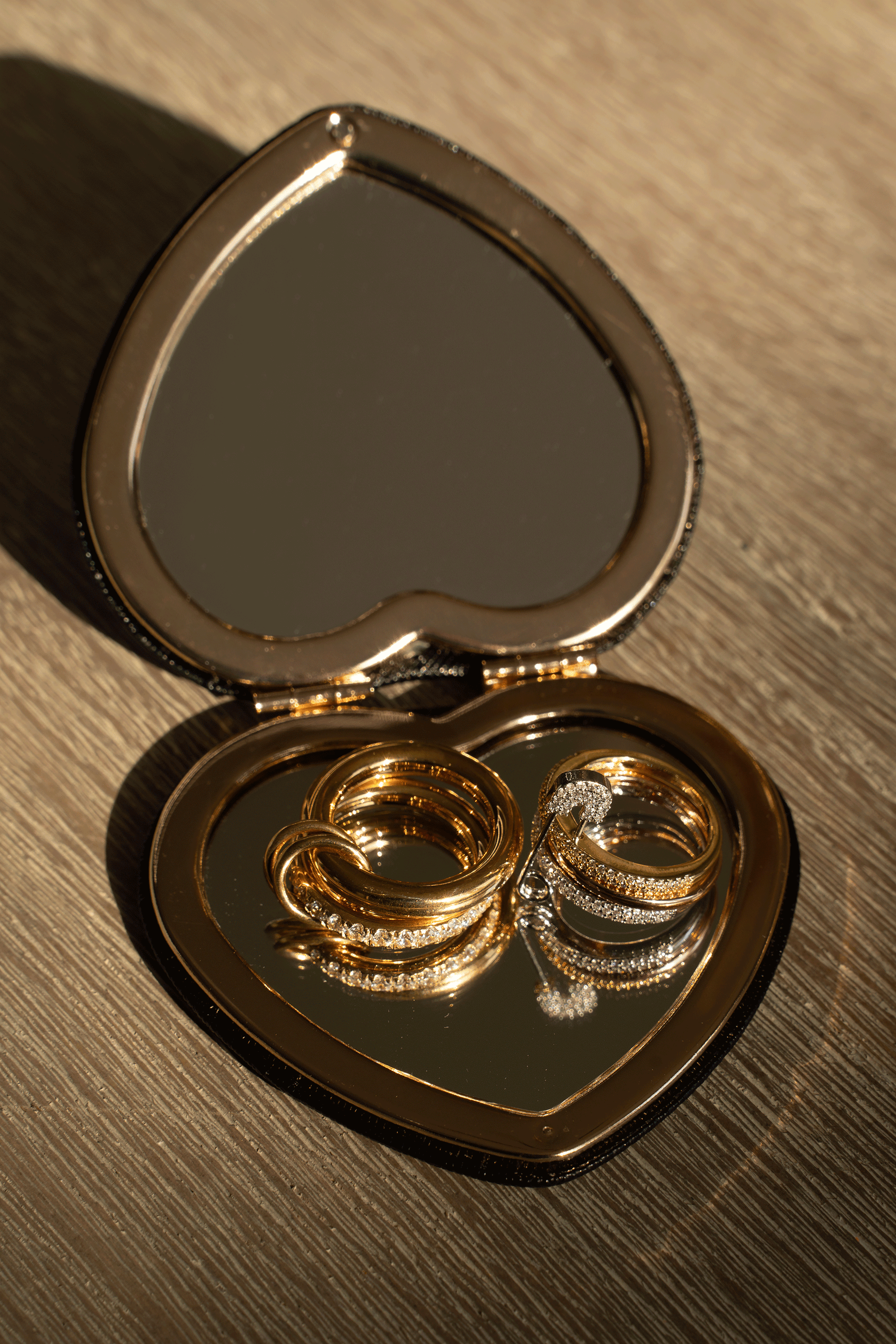 A luxurious gold ring with interlocking bands, featuring a row of sparkling diamonds. The intricate design adds elegance and sophistication to the piece.